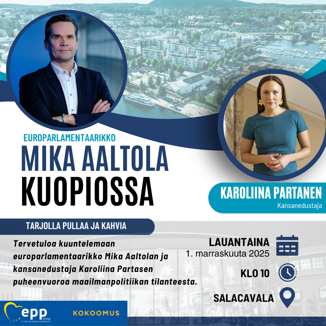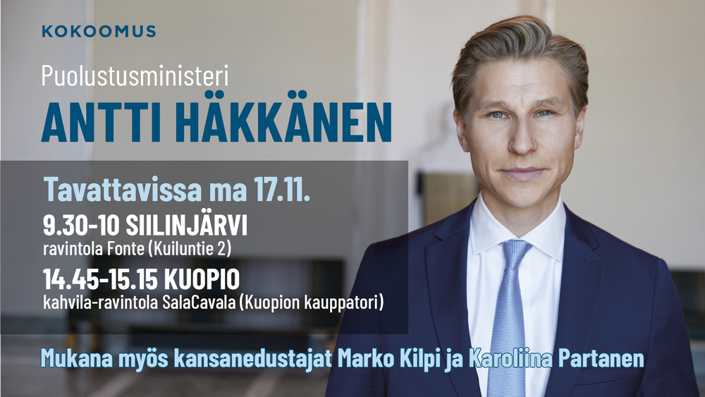 Perjantaina 12.9. klo 15-15.45. Kokoomuksen puoluesihteerinä lokakuussa aloittava Maggie Keskinen ja Savo-Karjalan kansanedustajat Markku Eestilä, Marko Kilpi ja Karoliina Partanen ovat tavattavissa…