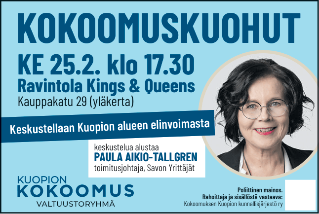 - lauantaina 13.12.2025 klo 13- - ravintola Hemingway´s, Kauppakatu 18, KuopioGlögitarjoilu!Tervetuloa tapaamaan valtuutettuja ja muita kokoomuslaisia luottamushenkilöitä. Keskustellaan yhdessä…